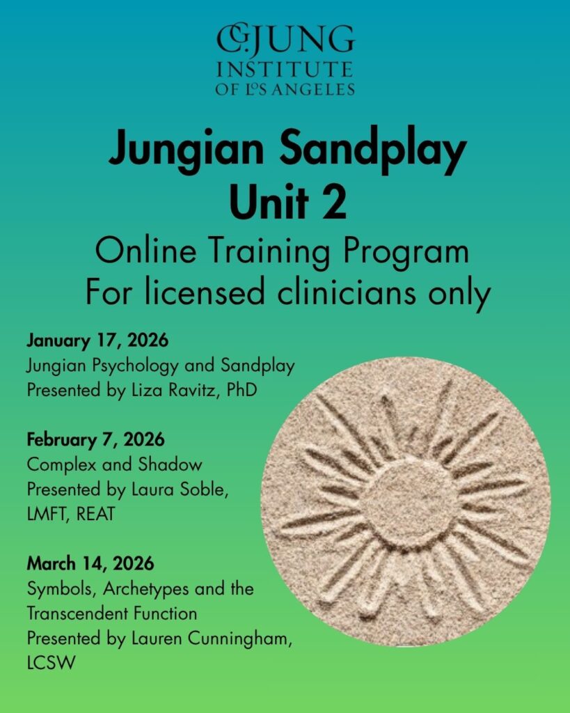 Unit 2 will focus on Jungian Theory in Sandplay, starting with “Jungian Psychology and Sandplay” presented by Liza Ravitz (PhD, CST-T); “Complexes and Shadow” presented by Laura Soble (LMFT, REAT, CST-T); and wrapping up with “Symbols, Archetypes, and the Transcendent Function” presented by Lauren Cunningham (LCSW, CST-T).